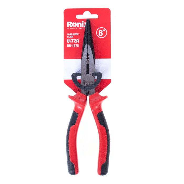 دمباریک الترا رونیکس سایز 8 اینچ روکش پلاستیکی با بدنه ای از جنس آلمینیوم کروم وانادیوم به منظور کنترل لغزش و دارای خاصیت ضد زنگ زدگی است.برای ساخت این انبر از مواد اولیه ی با کیفیت بالا استفاده میشود.تیغه های این ابزار از فولاد سخت کاری و حرارات داده شده ساخته شده است که باعث مقاومت بالای این وسیله در برابر فشار میشود و دوام و طول عمر آن را افزایش میدهد.بر روی تیغه این محصول قسمتی برای برش سیم یا اجسام دیگر قرار دارد و تیغه های آن با بالاترین کیفیت پولیش شده و لبه های آن شفاف شده است.دمباریک یکی از پرکاربردترین ابزار های تولید شده توسط رونیکس در چین است با توجه به کاربردهای متفاوتی که دارد انواع و سایز های مختلفی هم دارد.