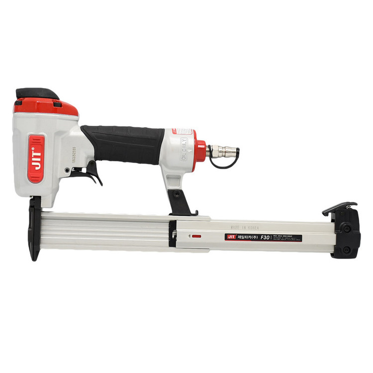 میخکوب بادی مدل F30-JIT یکی از دستگاه های کاربردی و مهم کارگاه های نجاری و دیگر کارخانه ها می باشد که به سبب سرعت و راحت کردن کار جایگزین چکش شده است. به طور کلی انواع میخکوب بادی F30-JIT برای اتصالات صنایع چوب و ام دی اف و کابینت سازی و همچنین در تولید مبلمان و درب و پنچره چوبی به کار برده می شوند. میخکوب بادی اسکا F30-JIT از انرژی باد برای انجام کار استفاده می کند به همین سبب به ابزار پنوماتیک نیز شناخته می شود. انواع میخ با ویژگی های مختلف در ابزارهای پنوماتیک میخکوب با ویژگی و مشخصات فنی متفاوت استفاده میشوند.میخکوب بادی مدل F30-JIT یکی از ابزارهای پنوماتیک با کیفیت ساخت کره جنوبی می باشد که هم سبک و پر قدرت است و هم تمیز کردن آن بسیار آسان و سریع می باشد. مدل میخکوب بادی F30-JIT دارای کاور اگزوز قابل تنظیم می باشد. خشاب کشـویی سخت کاری شده از جنس آلومینیوم Die-Cast با ظرفیت 100 عدد میخ، روکش دسته لاستیکی ارگونومیک، دارا بودن یک عدد شلنگ ۷متری از ویژگی های مهم و کاربردی میخکوب بادی F30 مدل جیت می باشد.مورد استفاده در صنعت مبلمان، رویهکوبی، دکوراسیون، ساخت درب و پنجره و ... است.