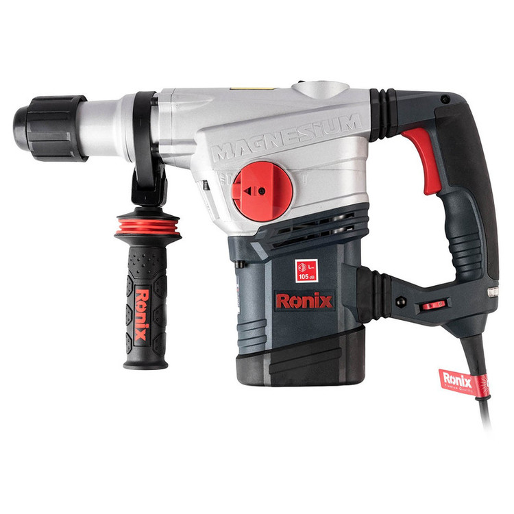 چنانچه به دنبال دریل بتن کن هستید، میتوانید محصول شرکت «Ronix» «رونیکس» را انتخاب کنید. این دریل بتن کن تحت عنوان مدل (2740) به بازار عرضه شده است. منبع تغذیه این ابزار برق بوده، ولتاژ آن 220 ولت و دارای ابزارگیر پنج شیار است. اقلام همراه این دریل بتن کن عبارتند از: کیف، دفترچه راهنما، دو عدد مته چکشی و سه عدد مته چرخشی، گریس، دسته جانبی، میله عمق سنج، درپوش غبارگیر و آچار مخصوص. وزن این ابزار 6.8 کیلوگرم است. سرعت گردش آزاد این محصول 450 دور بر دقیقه بوده، نرخ ضربه آن 2800 ضربه در دقیقه و توان آن 1250 وات است. حداکثر قطر سوراخکاری در مصالح این محصول 40 میلیمتر است و قابلیت وارد آوردن 10 ژول انرژی در هر ضربه را دارد. این دستگاه به هنگام کار نیروی بسیار زیادی را وارد میکند و دارای استاندارد ISO 9001: 2008 بوده و از عملکرد بسیار خوبی برخوردار است.